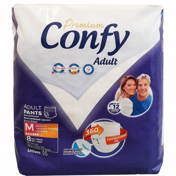 پوشک شورتی بزرگسال کانفی مدل پریمیوم سایز متوسط بسته 8 عددی