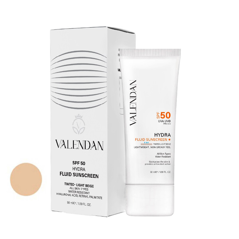 فلوئید ضد آفتاب رنگی صورت ولندان SPF 50 مدل HYD-LB محافظ UVA،UVB مناسب برای انواع پوست حجم 50 میلی لیتر