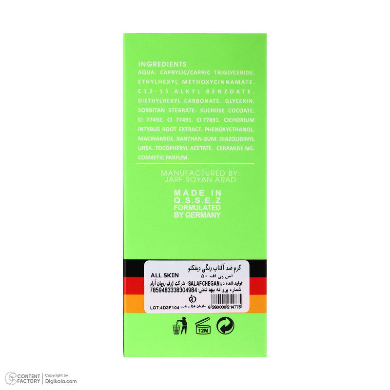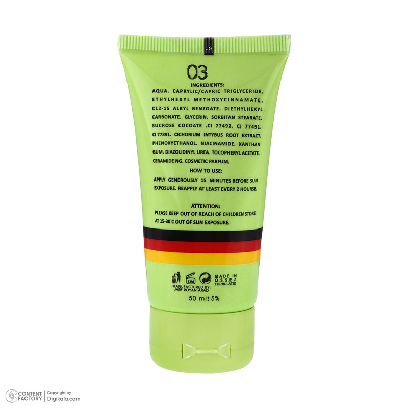 کرم ضد آفتاب رنگی دیفکتو SPF 50 مدل 03 ‌مناسب برای انواع پوست حجم 50 میلی‌لیتر