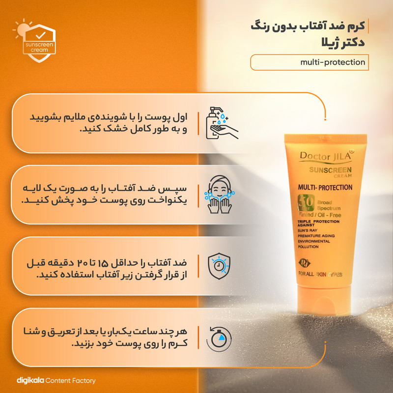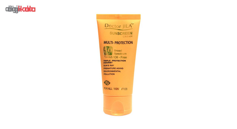 کرم ضد آفتاب بدون رنگ دکتر ژیلا SPF50 مدل multi-protection محافظ UVB، مرطوب‌کننده، مناسب انواع پوست حجم 50 گرم