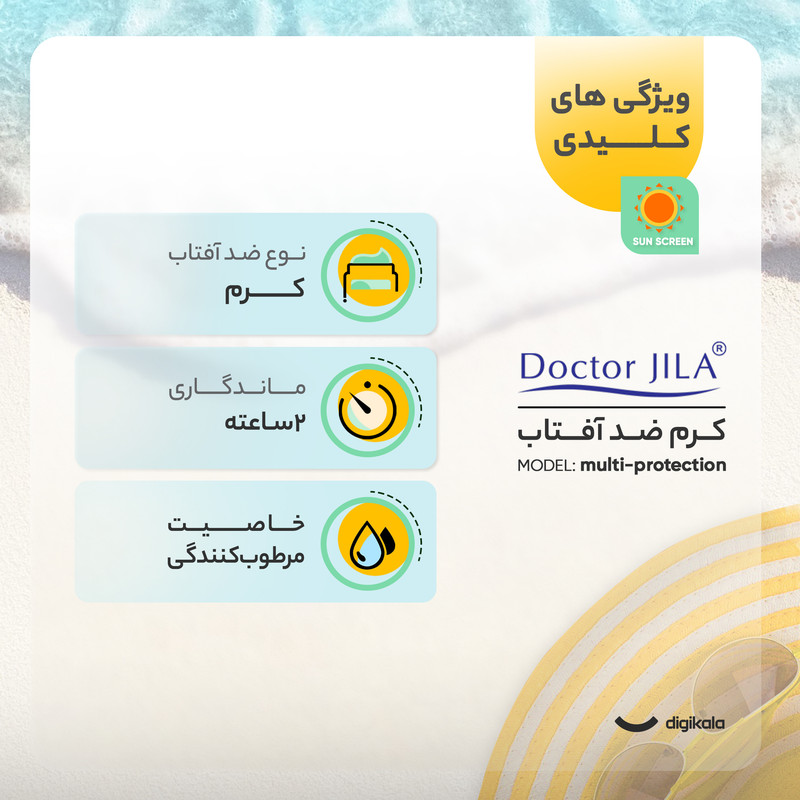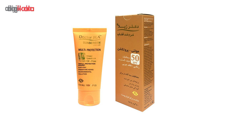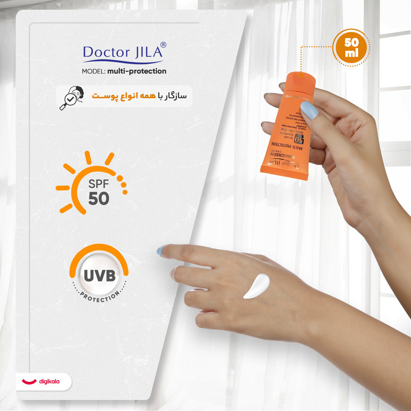 کرم ضد آفتاب بدون رنگ دکتر ژیلا SPF50 مدل multi-protection محافظ UVB، مرطوب‌کننده، مناسب انواع پوست حجم 50 گرم