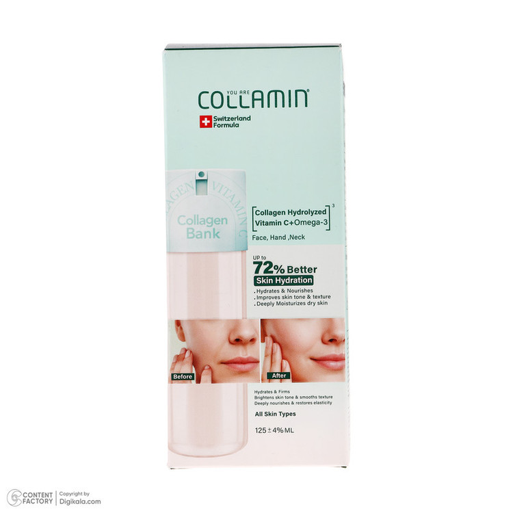 کرم مرطوب کننده صورت و گردن کلامین مدل collagen bank مناسب انواع پوست حجم 125 میلی لیتر