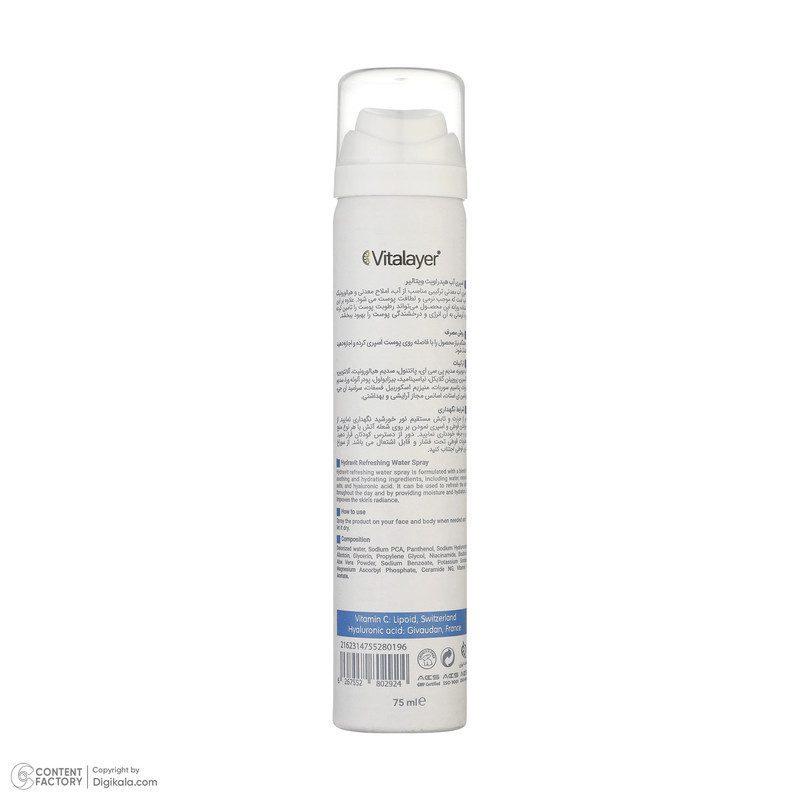 اسپری آبرسان صورت و بدن ویتالیر مدل Hydravit مناسب برای انواع پوست حجم 75 میلی لیتر