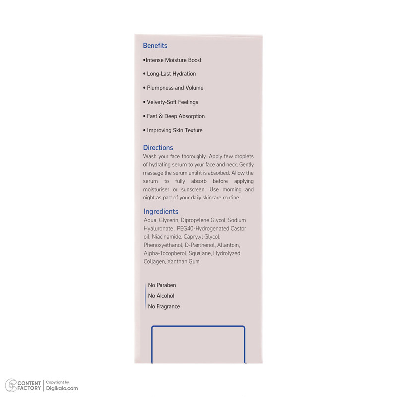 نیاسینامید , غنی شده با ویتامین , بدون الکل , بدون پارابن , فاقد چربی , گلیسیرین , کلاژن