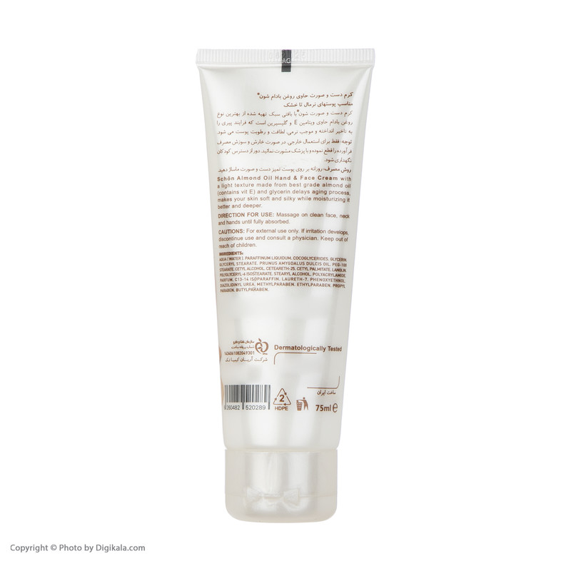 کرم مرطوب‌کننده دست و صورت شون مدل عصاره بادام حجم 75 میلی‌لیتر