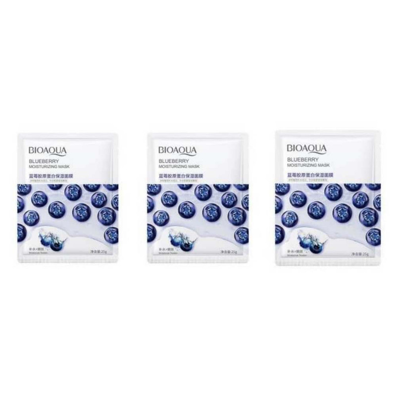 ماسک صورت بایو آکوا مدل بلوبری دون وزن 25 گرم بسته 3 عددی