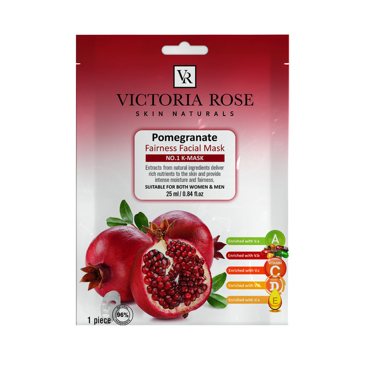 ماسک ورقه ای صورت انار ویکتوریا رز با توجه به ترکیباتش باعث رطوبت رسانی قوی، آبرسانی، ضد التهابی و کنترل آکنه می شود.