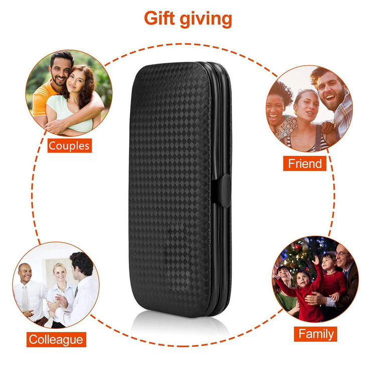 -دارای جعبه فلزی با روکش چرم طرح کربن و داخل جعبه روکش چرم مصنوعی قرمز رنگ