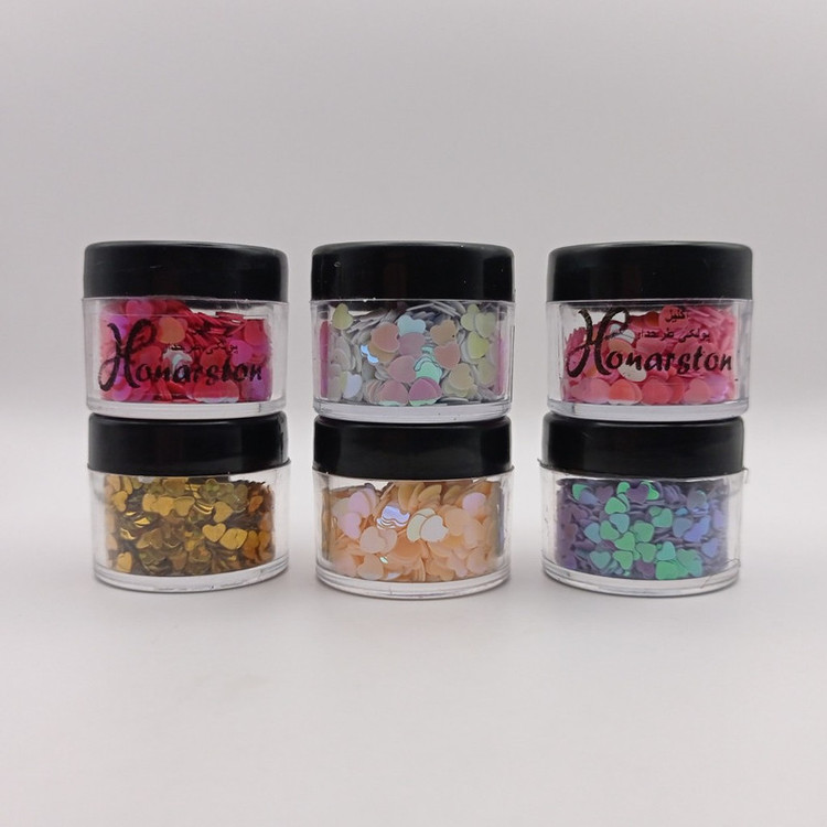 اکلیل طرح قلب ریز بسته بندی دارای ۶ رنگ مناسب برای دیزاین ناخن و کارهای هنری