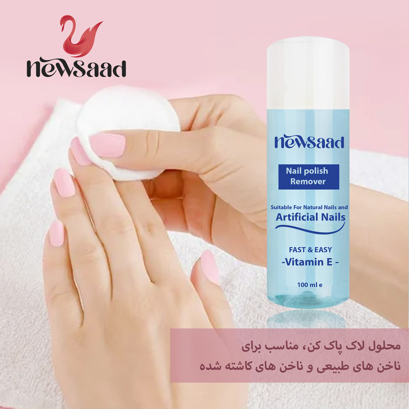 یک پد پنبهای را با مقدار مناسب از محلول مرطوب کنید. پد مرطوب شده را به مدت 3 ثانیه روی ناخنها نگه دارید و سپس به آرامی سطح ناخنها را پاک کنید.پس از استفاده، درب محلول را محکم ببندید و در مکانی خشک و دور از نور مستقیم نگهداری کنید.