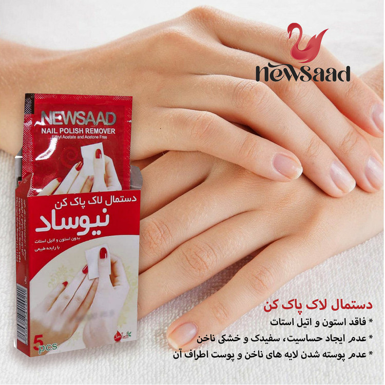 روش استفاده: برای استفاده از دستمالهای لاک پاککن نیوساد، کافی است یک دستمال را برداشته و به آرامی روی ناخن خود بکشید. این کار را تا زمانی که لاک به طور کامل پاک شود، تکرار کنید. در صورت نیاز میتوانید از یک دستمال جدید استفاده کنید.