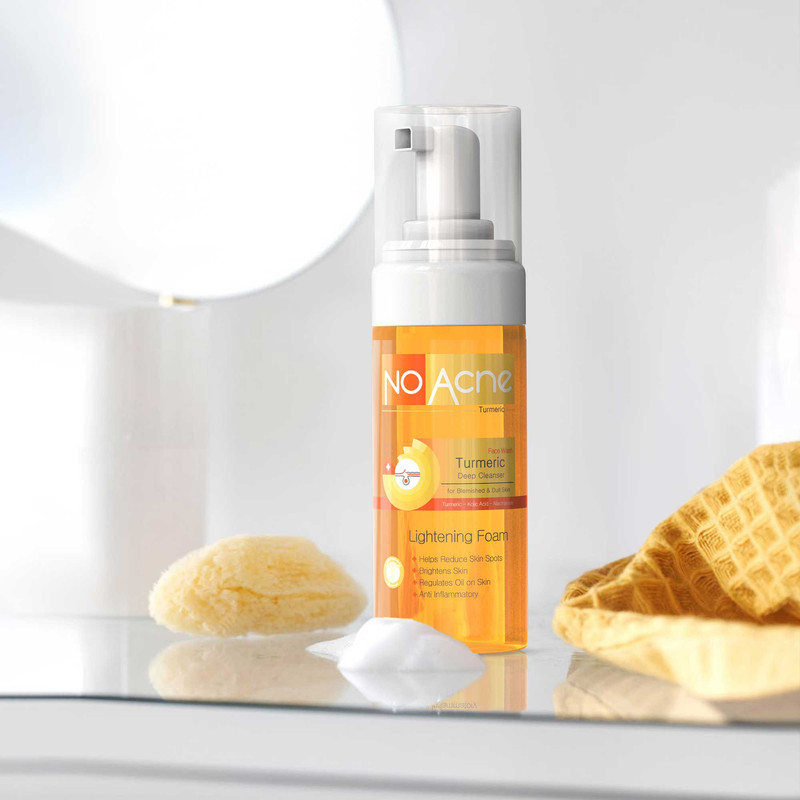 مقدار مناسبی از فوم روشن کننده زرد چوبه نو آکنه را به آرامی روی پوست ماساژ دهید. پس از یک الی دو دقیقه با آب ولرم آبکشی نمایید.