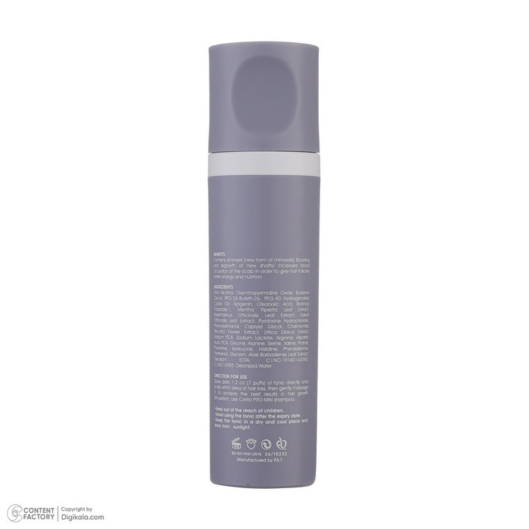 روزانه یک بار ۲ – ۱ سی سی(هر سی سی ۷ پاف اسپری) از تونیک را در نواحی ریزش مو روی پوست سر اسپری نمایید. سپس با نوک انگشتان با حرکت ملایم و به صورت دورانی کف سر را به خوبی ماساژ دهید.