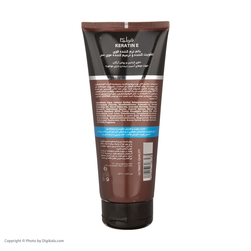 نرم‌کننده مو فولیکا مدل Keratine مناسب موهای خشک و آسیب دیده حجم 200 میلی‌لیتر
