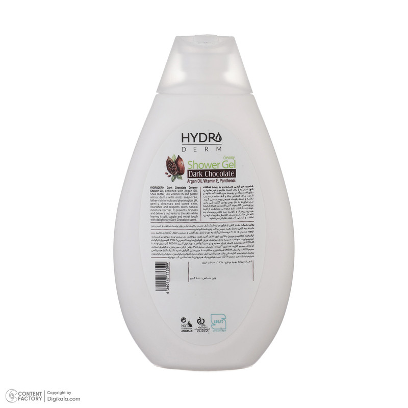 شامپو بدن کرمی هیدرودرم مدل Dark Chocolate مناسب انواع پوست حجم 500 میلی لیتر