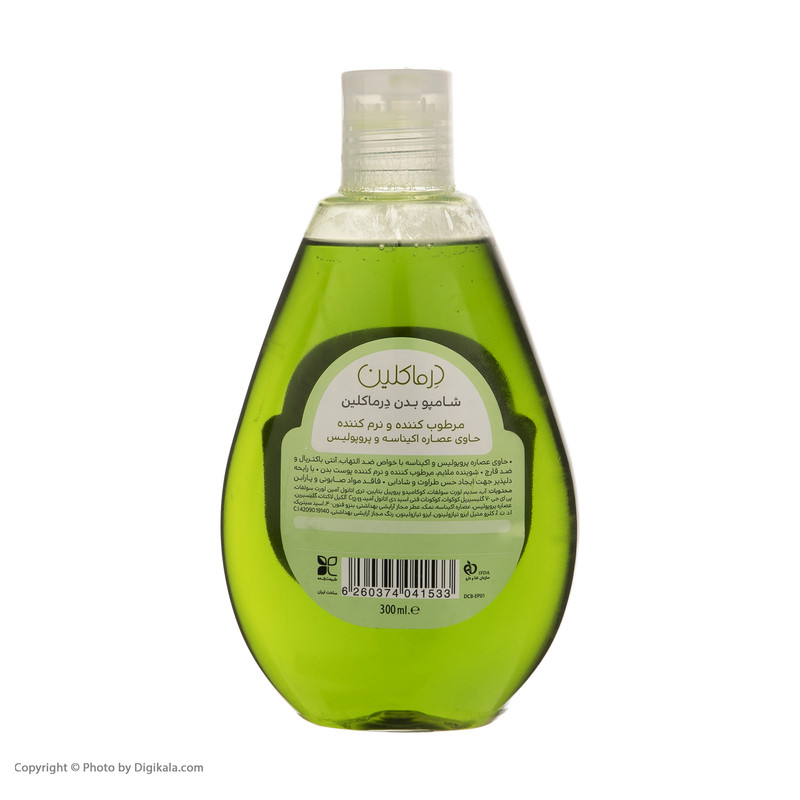 شامپو بدن نرم و مرطوب کننده درماکلین حاوی عصاره های اکیناسه و پروپولیس حجم 300 میلی لیتر