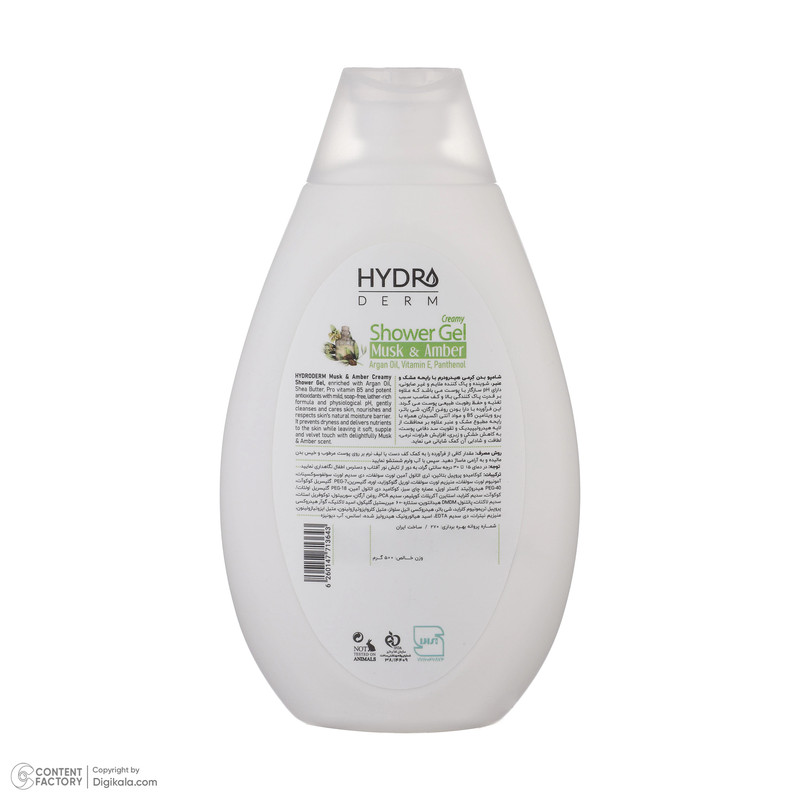 شامپو بدن کرمی هیدرودرم مدل Musk and Amber مناسب انواع پوست حجم 500 میلی لیتر