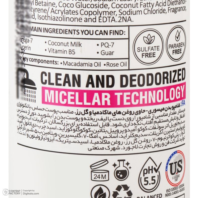 فاقد سولفات و پارابن/ تهیه شده با فرمول گیاهی/ دارای PH 5.5