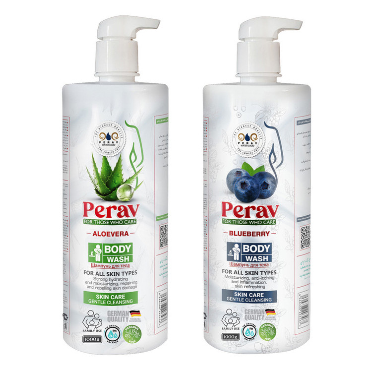 شامپو بدن پراو مدل بلوبری و آلوئه ورا وزن 1000 گرم بسته دو عددی