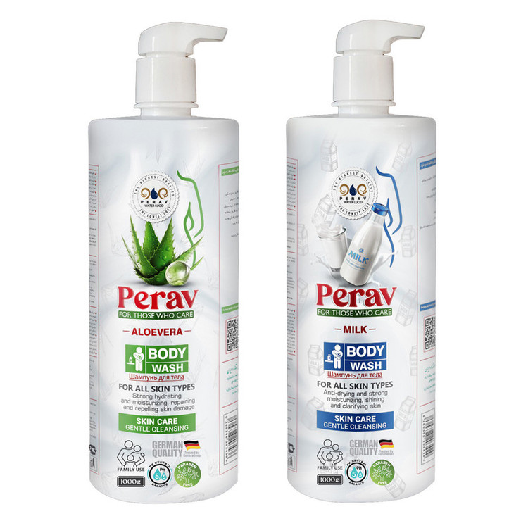 شامپو بدن پراو مدل آلوئه ورا و شیر وزن 1000 گرم بسته دو عددی
