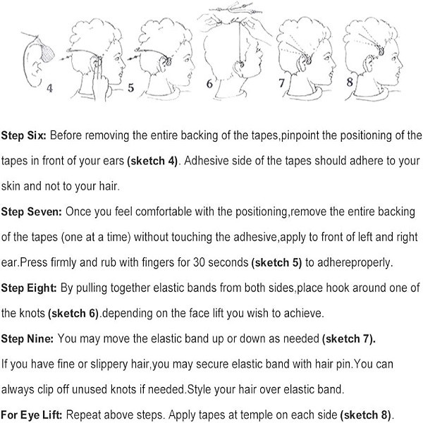 روش استفاده: پوست را با الکل و یا پاکننده بدون چربی پاک کنید و چسب را بر روی نواحی که قصد لیفت دارید بچسبانید و کش ها را با توجه به فاصله دو چسب انتخاب و وصل کنید.