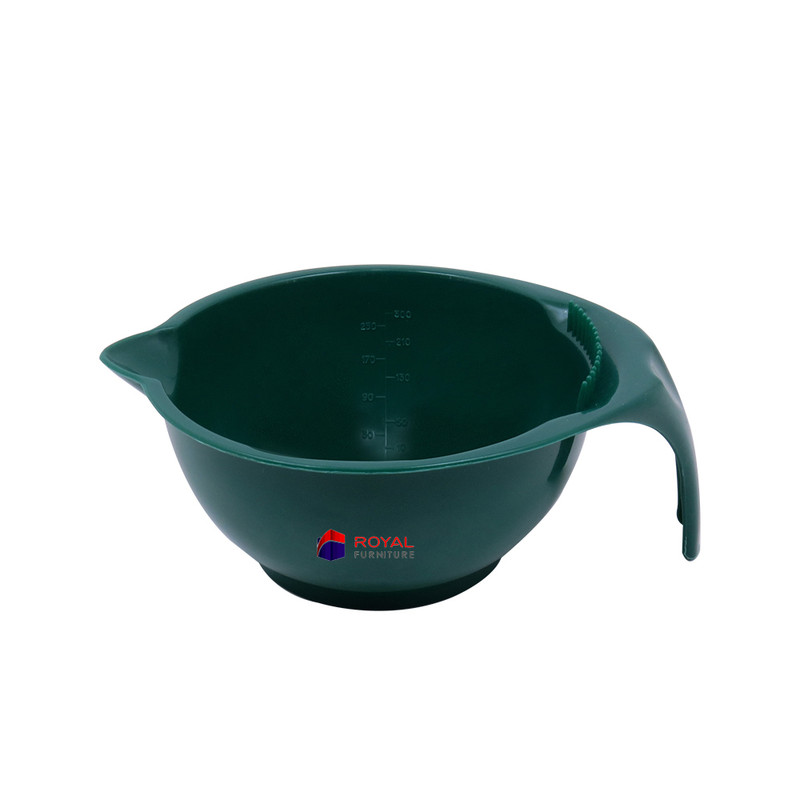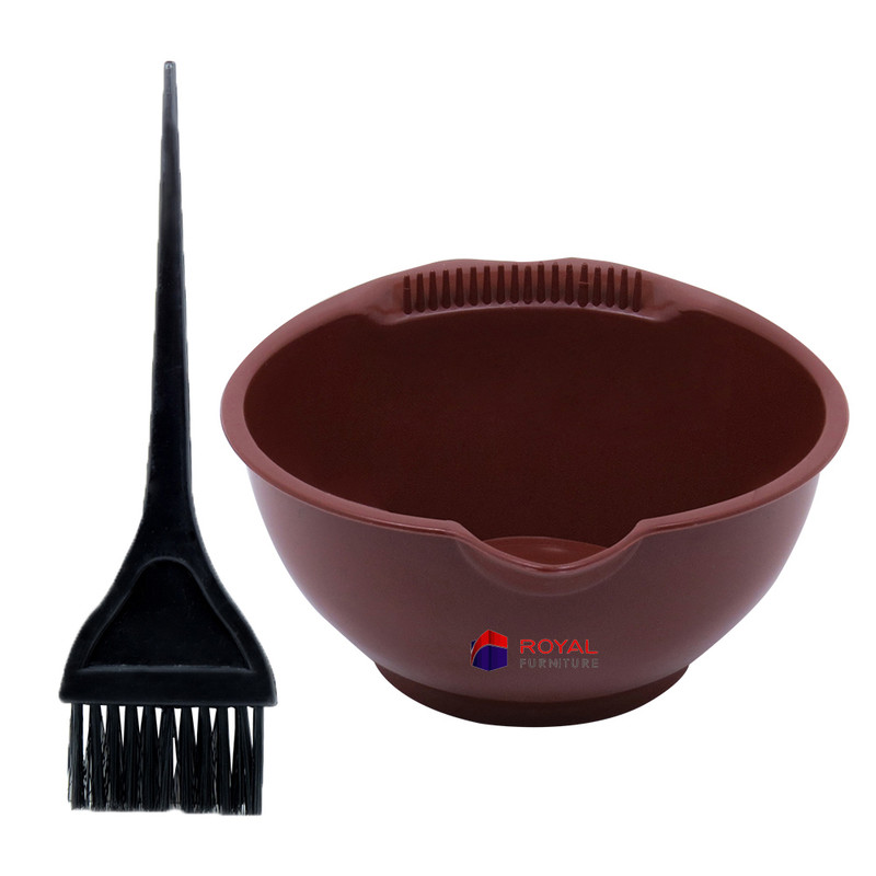 کاسه رنگ رویال به همراه قلم مو این محصول دارای درجه بندی حک شده و دارای شانه جهت تخلیه رنگ اضافی برس رنگ میباشد.جنس این محصول پلاستیک درجه یک و دارای دسته نگهداری و سایز متوسط میباشد.این محصول در رنگ های قهوه ای ، سبز ، گلبهی ، صورتی تیره و زرد میباشد. قطر دهانه کاسه 13 سانتی متر است.
