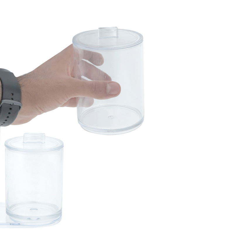 استند های لوازم آرایشی، یکی از ملزومات میز آرایشی شما می باشند، این استند از جنس اکرولیک شفاف بوده و دارای دو استوانه در سایز های بزرگ و کوچک می باشد،در یکی از آنها می توان گوش پاک کن و دیگری پنبه های آرایشی خود را قرار دهید.