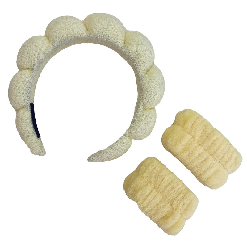 تل مو مدل مارشمالو همراه ۲ عدد مچ بند حوله ای