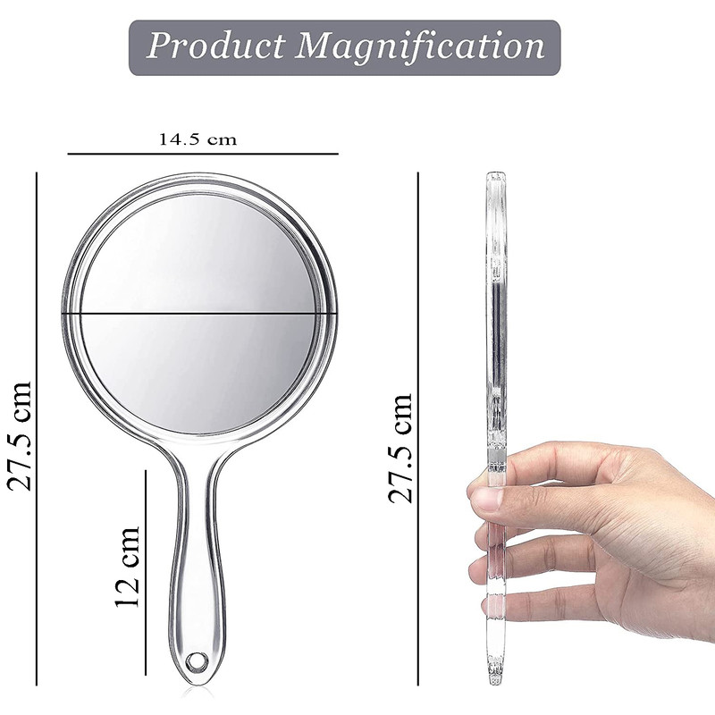 این مدل آینه یک محصول جهت استفاده به صورت دستی است که استفاده از آن بسیار راحت میباشد. این محصول یک آینه دو طرفه میباشد که یک طرف آن یک آینه ساده با کیفیت و طرف دیگر آن با بزرگنمایی 5X میباشد. قطر آینه 13.5 سانتی متر و طول آن 27.5 سانتی متر و طول دسته 12 سانتی متر میباشد.