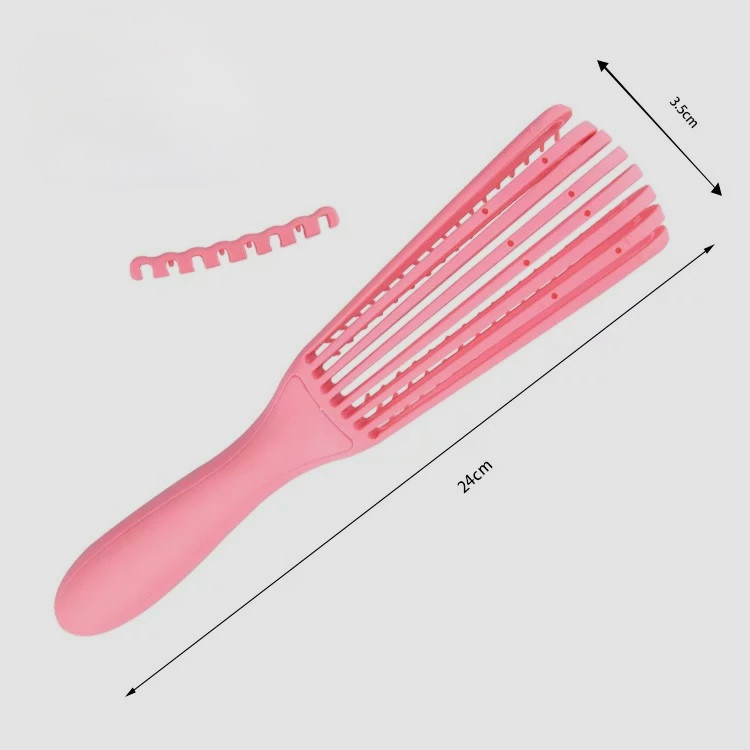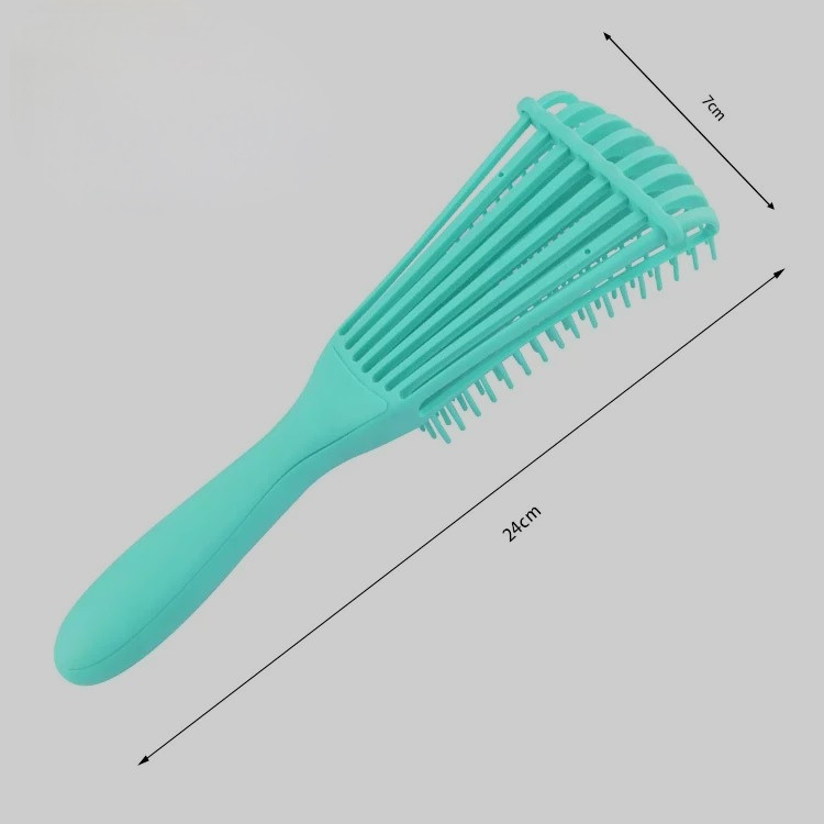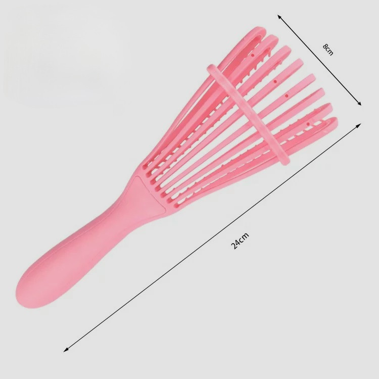 این برس معروف به برس فلکسی اختاپوسی و مناسب باز کردن گره ی موهای فر ریز فردرشت موج دار و انواع مو فر است جنس پلاستیک منعطف دارد خیلی محکم وخوش دست است هشت ردیف باریک دارد که با یک نوار به هم متصل میشوند و میتوانید از این نوار استفاده کنید یا میتونید نوار رو بردارید این برس یکی از محبوب ترین برس ها بین موفرفری هاست چون مو ها را نمیکشد و خیلی راحت ونوازشی گره های سخت مو ها را باز میکند این برس را میتوانید تنظیم کنید اگر موهای پر و کوتاهی دارید نوار پشتی برس را بالا تنظیم کنید و اگر موهای بلند و ضخیمی دارید نوار را پایین تنظیم کنید نواری که روی شانه قفل شده از قسمت پشت شانه دو محل دارد که برای تنظیم است