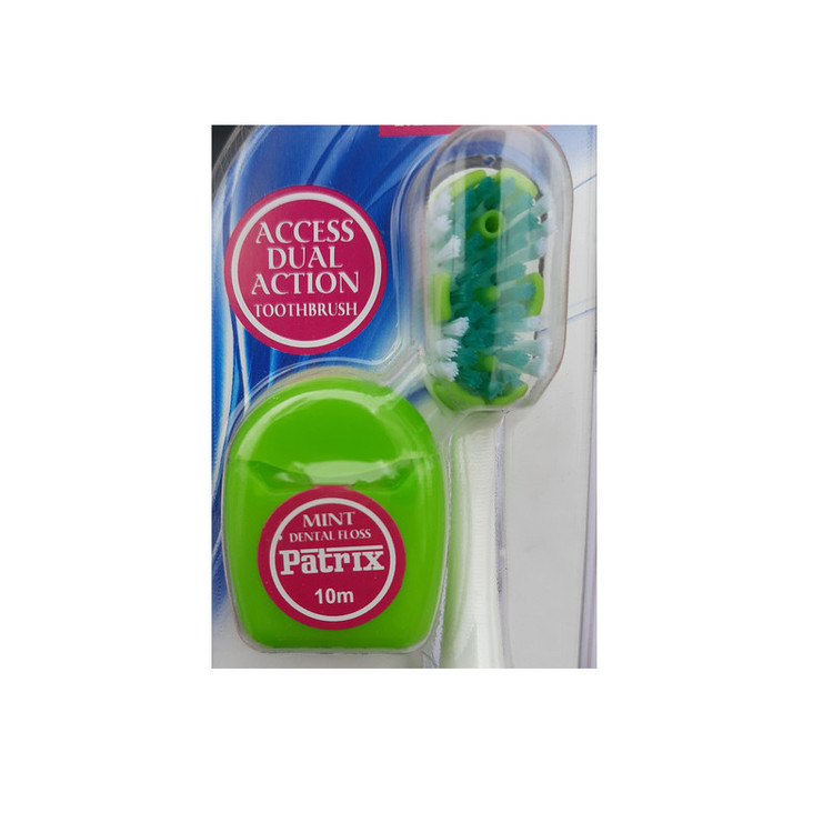 مسواک پاتریکس مدل Dual Action با برس متوسط به همراه نخ دندان