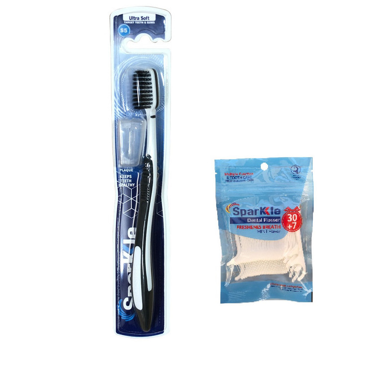 مسواک اسپارکل مدل S5 با برس خیلی نرم به همراه نخ دندان اسپارکل مدل کمانی مجموعه 37 عددی
