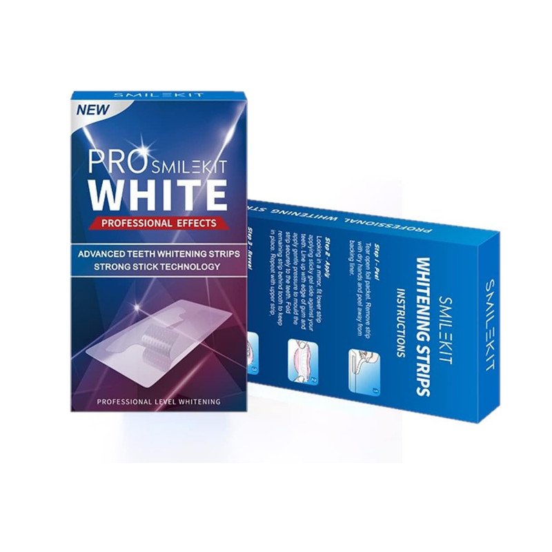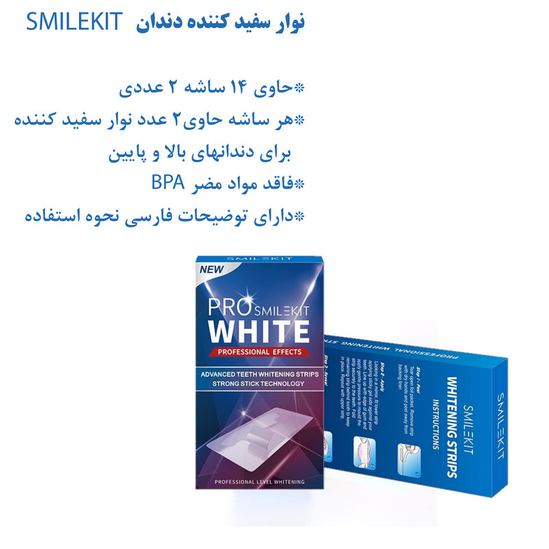 لذت داشتن دندان هایی سفید به راحت ترین و سریع ترین روش ممکن توسط نوار سفید کننده دندان مدل Complete 360 SmileKit که یک ابزار فوق العاده برای سفید کردن و از بین بردن جرم و تیرگی های دندان به روش بسیار راحت و با سرعت انجام بالا است. این محصول با تکنولوژی ساخت جدید به کمک شما خواهد آمد تا از این به بعد دندان هایی سفید همیشه درخشان داشته باشید. بسته بندی این محصول شامل 14 ساشه کوچک است که در هر ساشه 2 نوار قرار دارد. یکی برای ردیف دندان های بالا و یکی برای دندان های پایینی. به همراه این محصول ، یک برگه کوچک شامل نحوه دقیق استفاده برای مشتریان قرار گرفته است تا محصول به درستی استفاده شود و بیشترین بهره برداری از آن را داشته باشید.