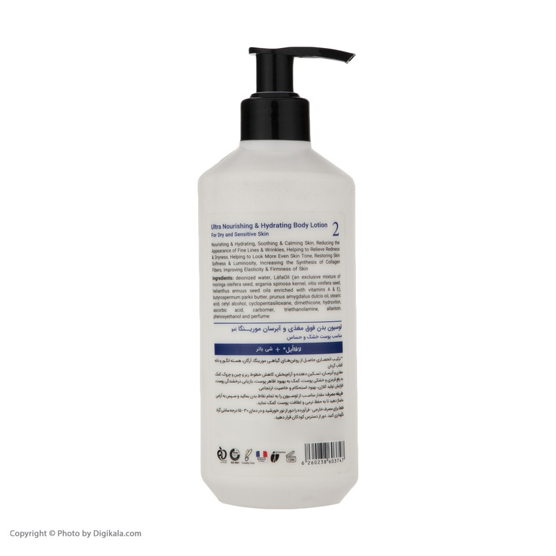 لوسیون مرطوب کننده بدن مورینگا امو مدل 02 مناسب برای پوستهای خشک و حساس حجم 300 میلیلیتر