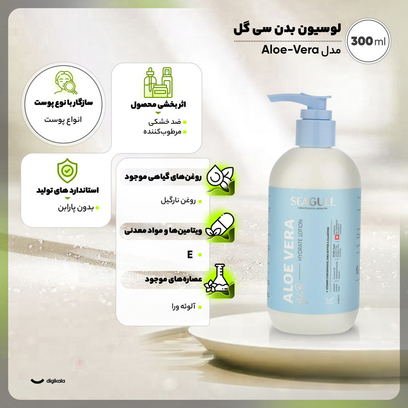 حاوی روغن نارگیل، ویتامینهای مورد نیاز بدن و آلانتوئین - مناسب پوستهای معمولی تا خشک - کاهش اگزما و تحریکات پوستی - مرطوبکننده و آبرسان - حاوی عصاره آلوئه ورا - فاقد پارابن و لانولین - ترمیمکننده پوست - ضد التهاب و خارش - نرمکننده پوست
