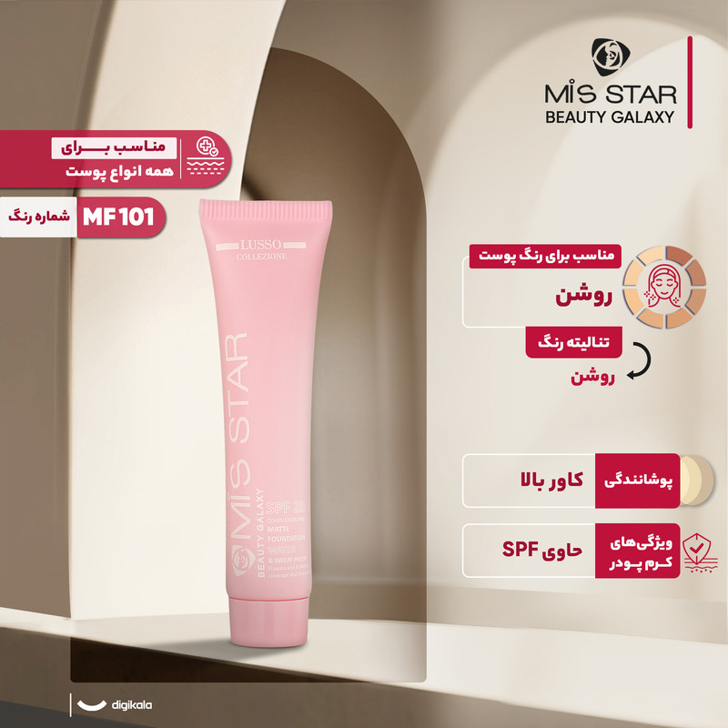 با کمک براش، بیوتیبلندر یا انگشتان خود، مقداری کرم پودر روی صورت پخش کنید.