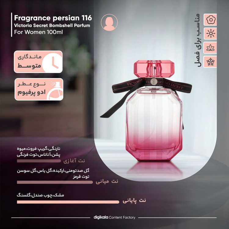 ادو پرفیوم زنانه فراگرنس پرشیا 116 مدل ویکتوریا سکرت بامب شل حجم 100 میلی لیتر