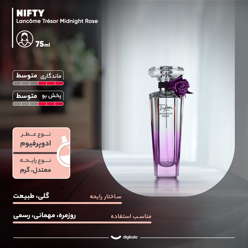 ادوپرفیوم زنانه نیفتی مدل لانکوم ترزور میدنایت رز حجم 75 میلی‌لیتر