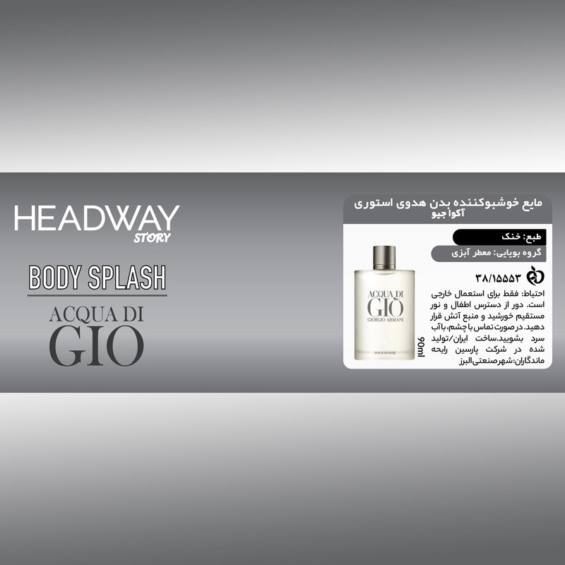 بادی اسپلش مردانه هدوی استوری مدل جورجیو آرمانی آکوا جیو حجم 90 میلی لیتر
