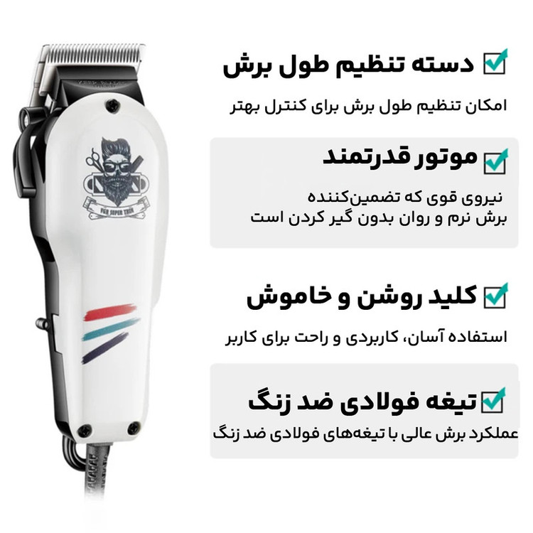 دارای اهرم تنظیم کننده اصلاح، طول کابل 2.5 متر،