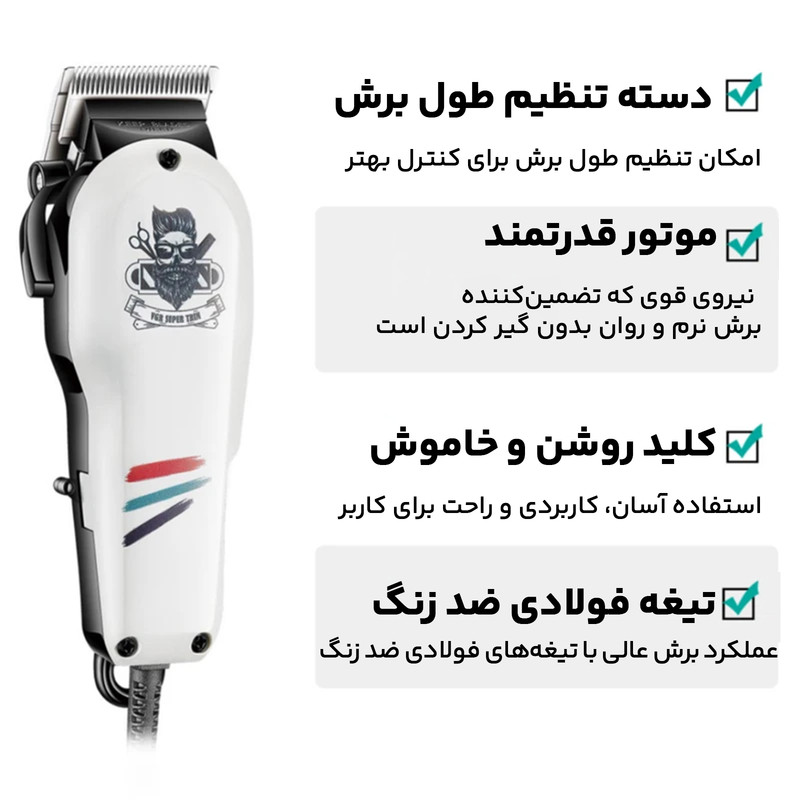 دارای اهرم تنظیم کننده اصلاح، طول کابل 2.5 متر،