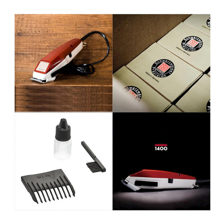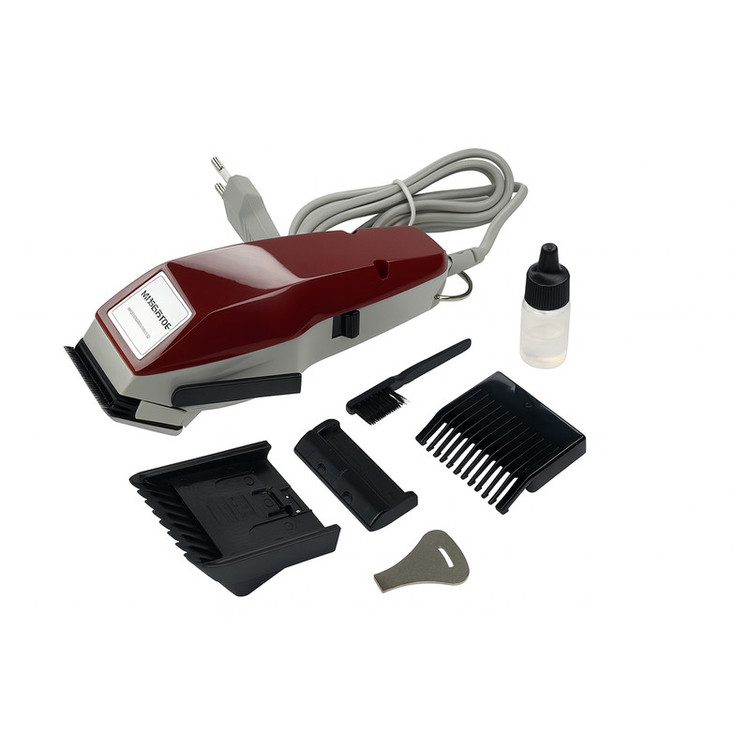 جعبه - روغن - برس تمیز کننده - دو عدد شانه - درپوش محافظ - آچار مخصوص باز کردن پیچ و تنظیف
