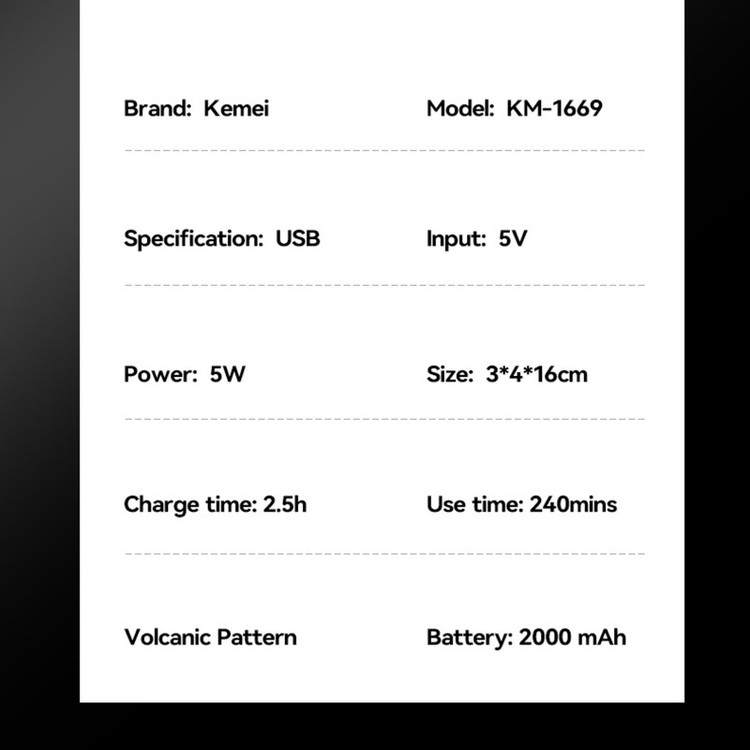 ماشین اصلاح موی سر و صورت شارژی کیمی مدل KM-1669
