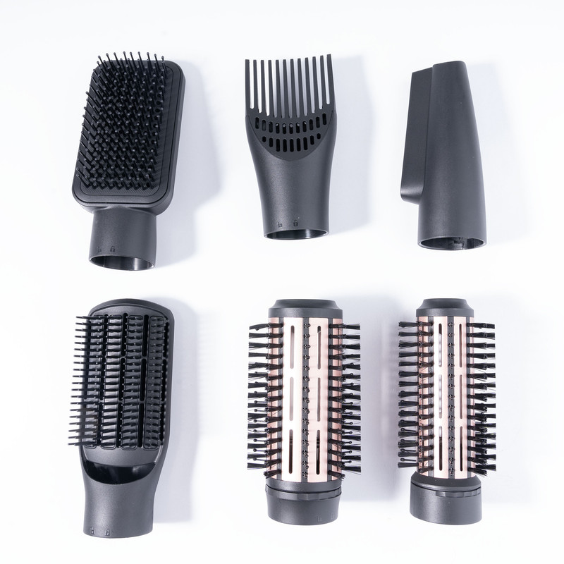 اقلام همراه سشوار: سری شانهدار , سری برسدار گرد باریک , سری برسدار گرد پهن , سری چرخشی , سری برسدار تخت , نازل صافکننده