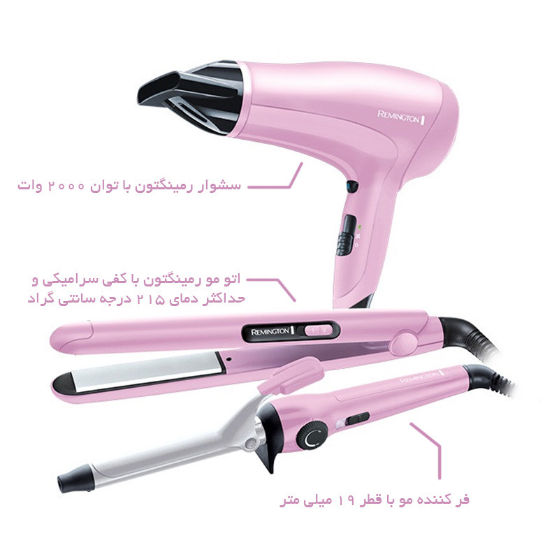 مجموعه سشوار و اتو و فر کننده مو رمینگتون مدل CI5219GPR
