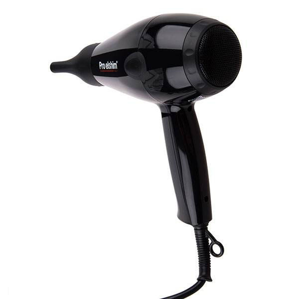 سشوار «پرو الشیم» (Pro Elshim) مدل «Salome» دارای موتور 1800 وات AC و فناوریهای یونی و سرامیک تورمالین است. سرعت موتور سشوار را میتوان بین دو حالت سرعت معمولی و تند تغییر داد. جنس المنت حرارتی سشوار از سرامیک تورمالین است و دمای آن را میتوان در سه حالت مختلف تنظیم کرد. دو متمرکز کنندهی باریک هوا برای حالت دادن به موها ارائه شده است. برای حجم دادن به موها هم میتوان از دیسپانسر ارائه شده استفاده کرد. Salome مجهز به فناوری تولید یون است. یون تولیدشده از خروجی باد سشوار خارجشده و با برخورد به موها، الکتریسیتهی ساکن روی مو را از بین میبرند. الکتریسیته ساکن عامل وز شدن موها است. بنابراین فناوری یونی کمک میکند موها وز نشوند و نرم تر و درخشانتر به نظر برسند. در قسمت ورودی هوای سشوار فیلتر هوای آن قرار دارد. این فیلتر را میتوان به شکل چرخشی آزادکرده و آن را تمیز کرد. بدنهی سشوار به رنگ مشکی ساخته شده و تنها دکمهی تنظیم سرعت به رنگ قرمز روی دسته دیده میشود. سیم برق در محل اتصال به دسته دارای حلقهای پلاستیکی است که برای آویزان کردن سشوار استفاده میشود. به طور خلاصه Pro Elshim Salome دارای موتور 1800 وات AC، المنتی از جنس سرامیک تورمالین، دو حالت سرعت و سه حالت دما، متمرکز کننده و دیسپانسر، فناوری تولید یون، فیلتر هوای قابل جدا شدن و حلقهی آویختن است.