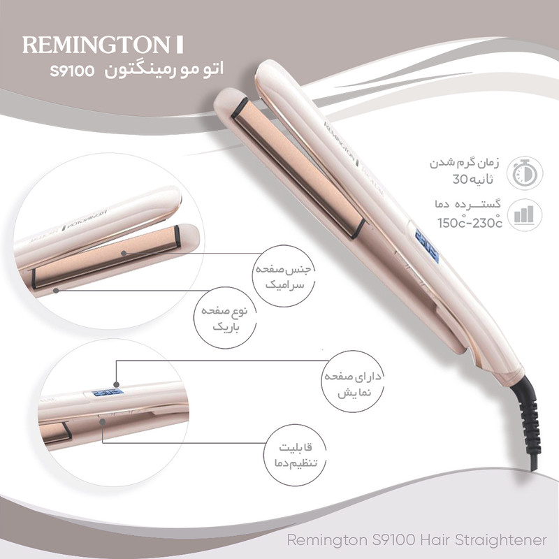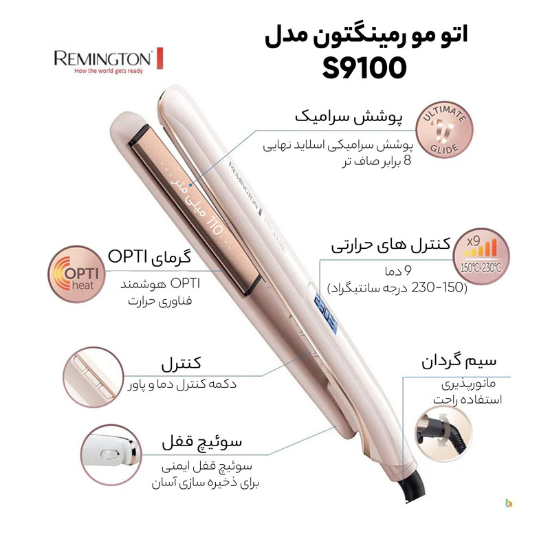 5 برابر صافی بیشتر - دارای صفحات سرامیکی - گرم شدن در 30 ثانیه - تغییر دما بین 150 تا 230 - دارای فناوری هوشمند Opti Heat - دارای تنظیمات +Pro - حفظ ماندگاری حالت موها