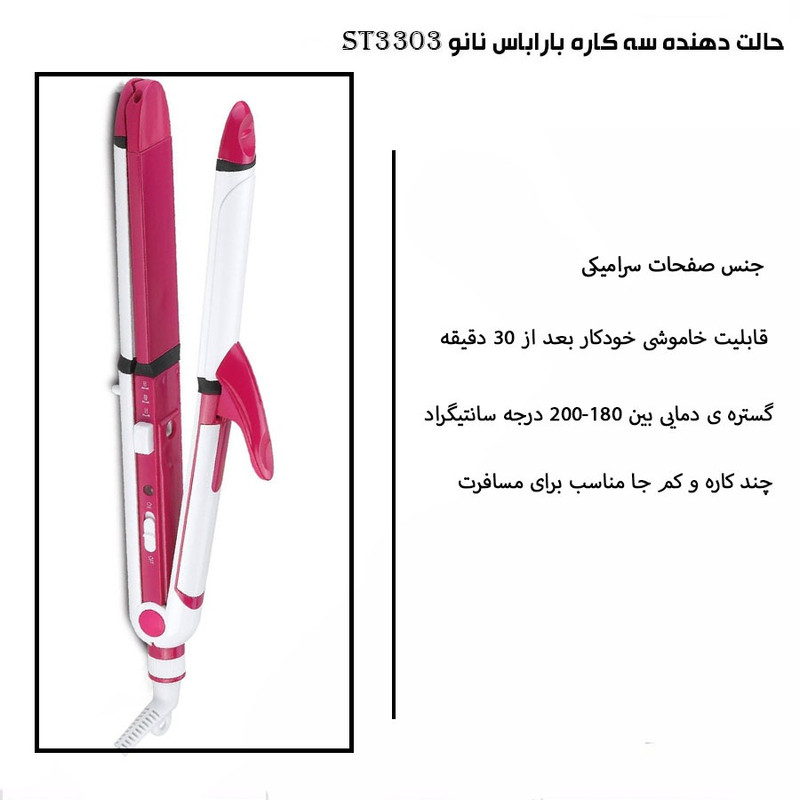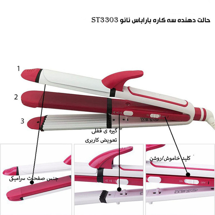 سایر توضیحات: صاف کننده، فر کننده و حالت دهنده ی مو