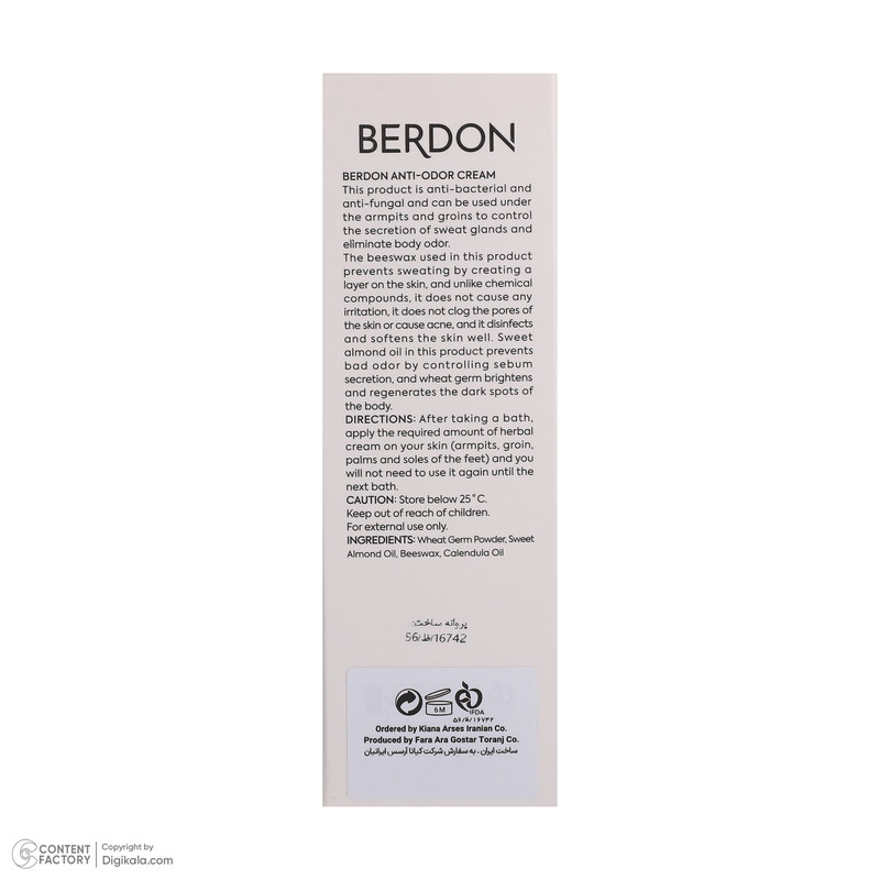 در ترکیبات این محصول پودر جوانه گندم، روغن بادام شیرین، موم زنبور عسل و روغن کالاندولا وجود دارد.