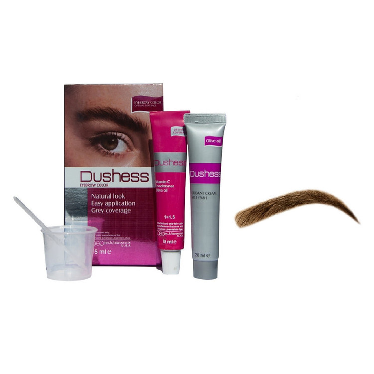 رنگ ابرو حاوی روغن های بادام ، هسته انگور و آرگان می باشد. محتویات: یک تیوپ رنگ ابرو 15 میل یک تیوپ اکسیدان 20 میل یک عدد کاسه پلاستیکی یک عدد اسپاتول
